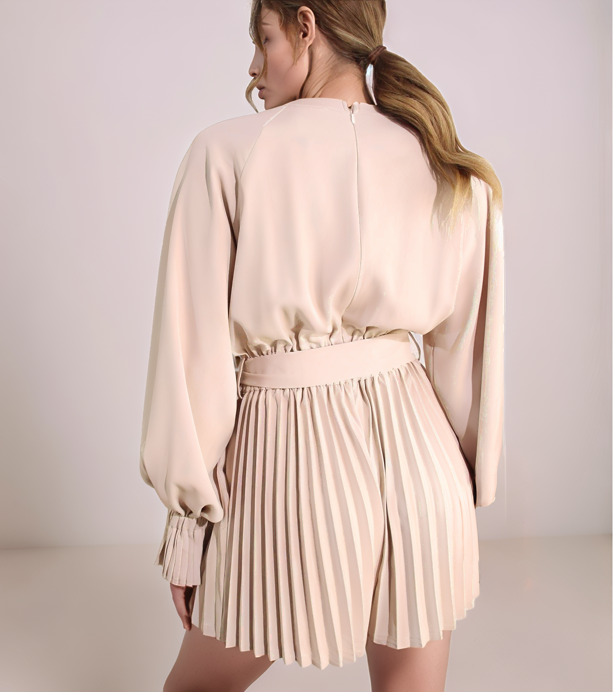 Crafted from a luminous satin with an exquisite drape, this romper catches the light beautifully with every movement. The genius is in the details that mimic classic suiting: sharply pleated shorts provide beautiful structure and flow, while cuffed sleeves and a hidden button placket offer a clean, meticulously polished finish. A discreet back zipper ensures a seamless, tailored fit that sculpts your silhouette.
