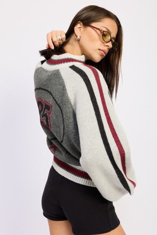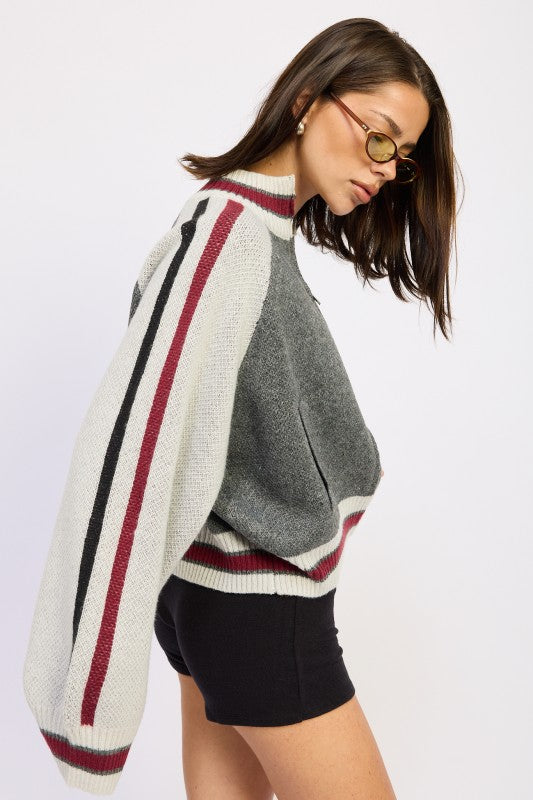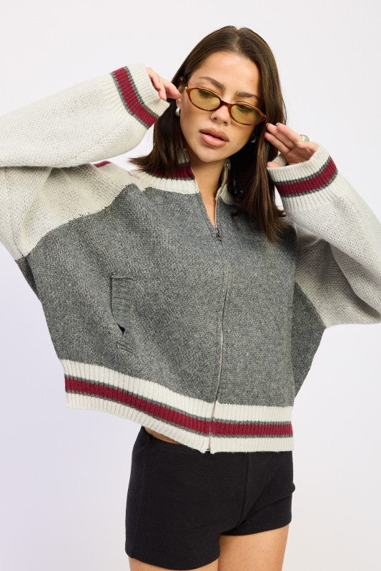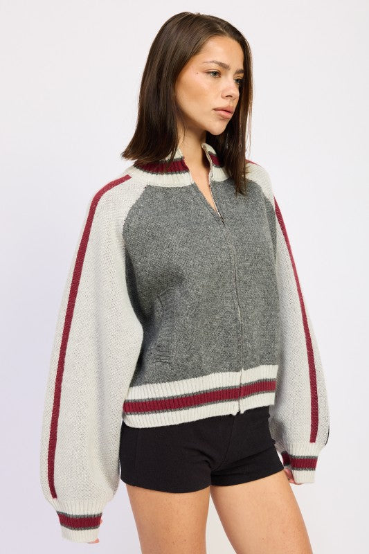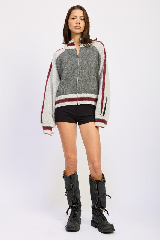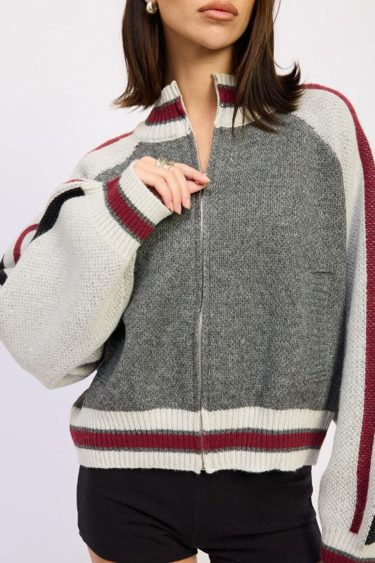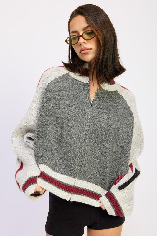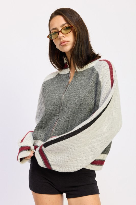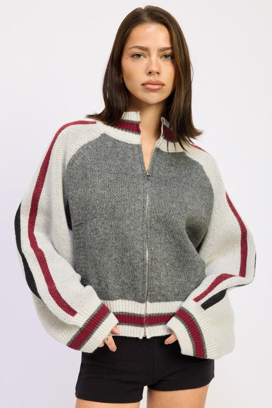 ZIP UP SWEATER CARDIGAN WITH MOCK NECK