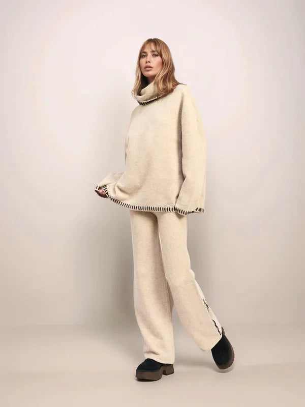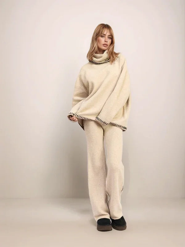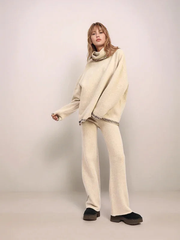 For a Chic Monochromatic Look: Create the ultimate elevated loungewear set by pairing these knit pants with the Hygge matching knit top. It's a stunning, seamless look for a sophisticated day at home or a casual coffee run.